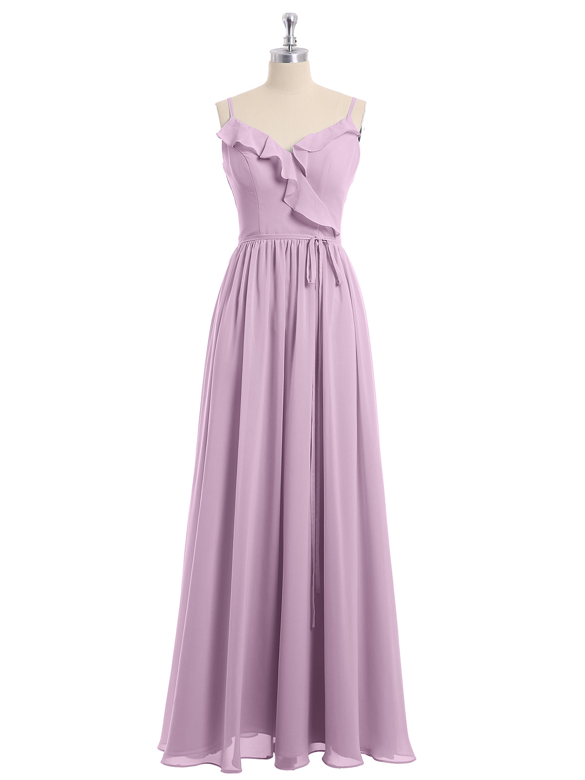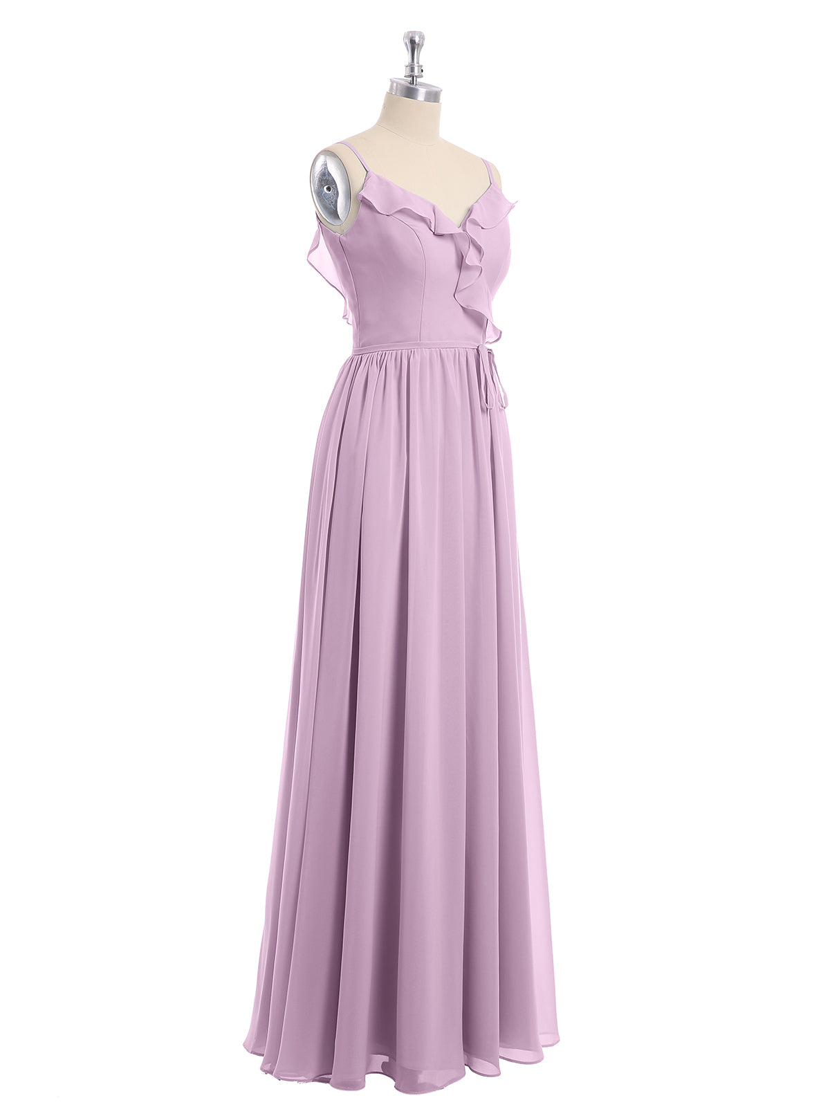 Spaghetti Strap Chiffon Bridesmaid Gowns with V-neck-Wisteria Plus Size