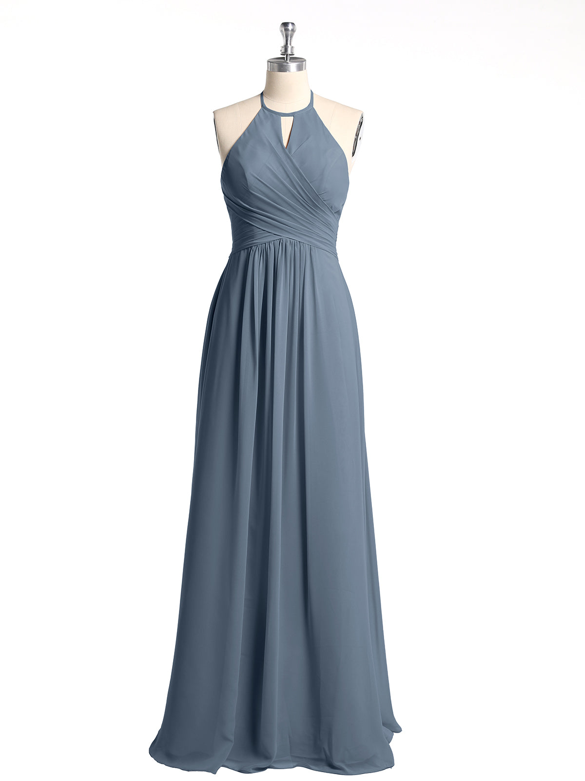 Halter Chiffon Long Dresses for Bridesmaids-Dusty Blue Plus Size