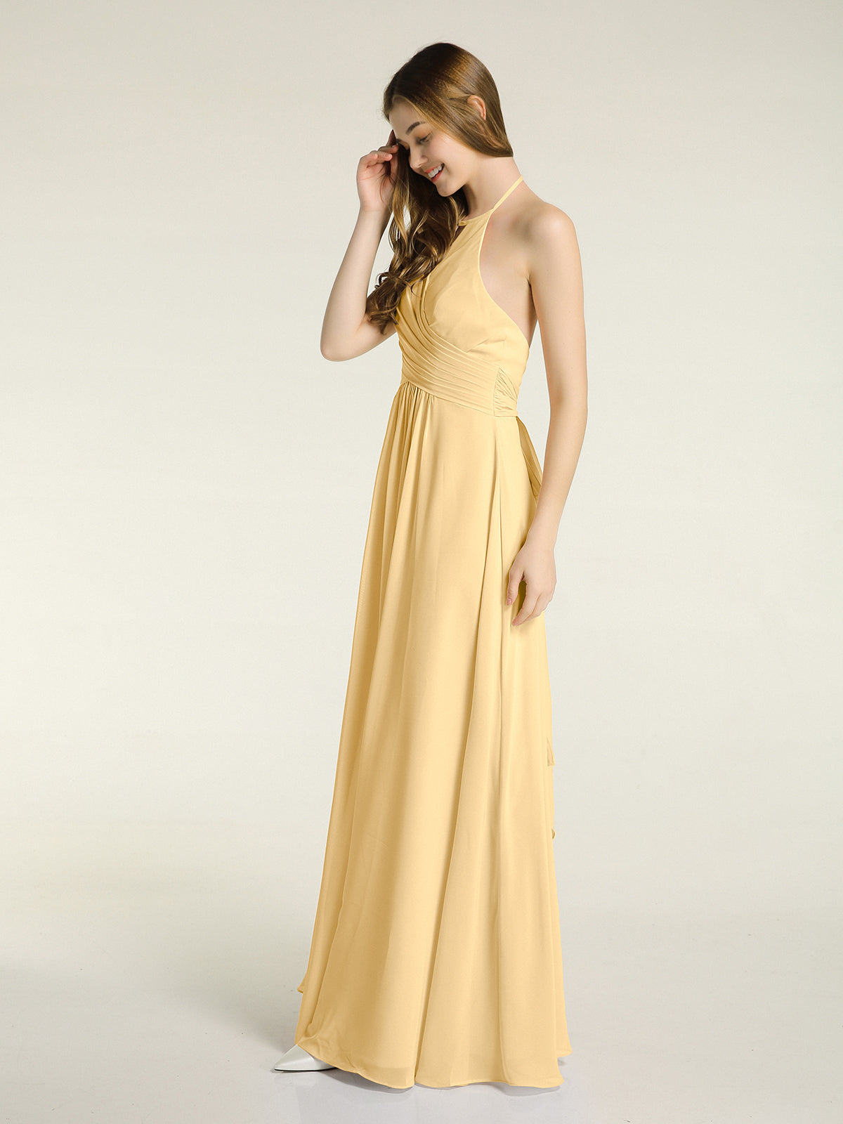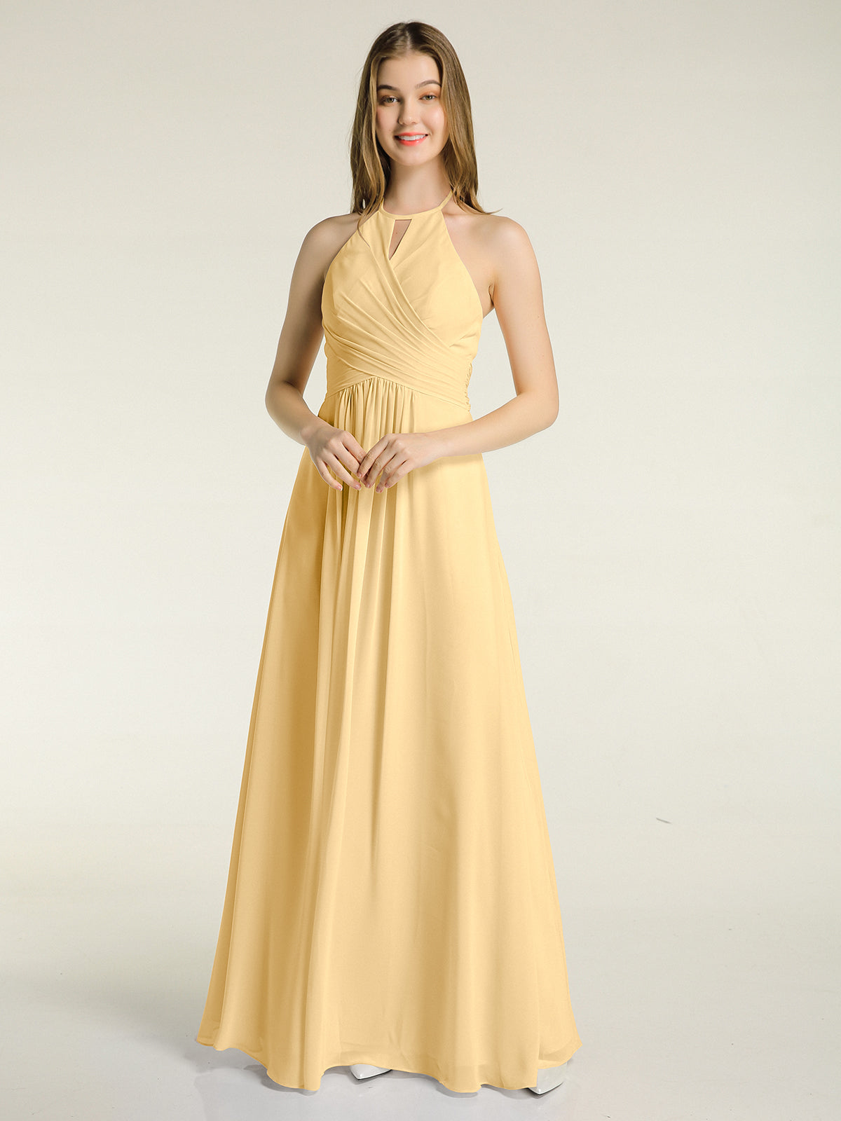 Halter Chiffon Long Dresses for Bridesmaids-Gold Plus Size