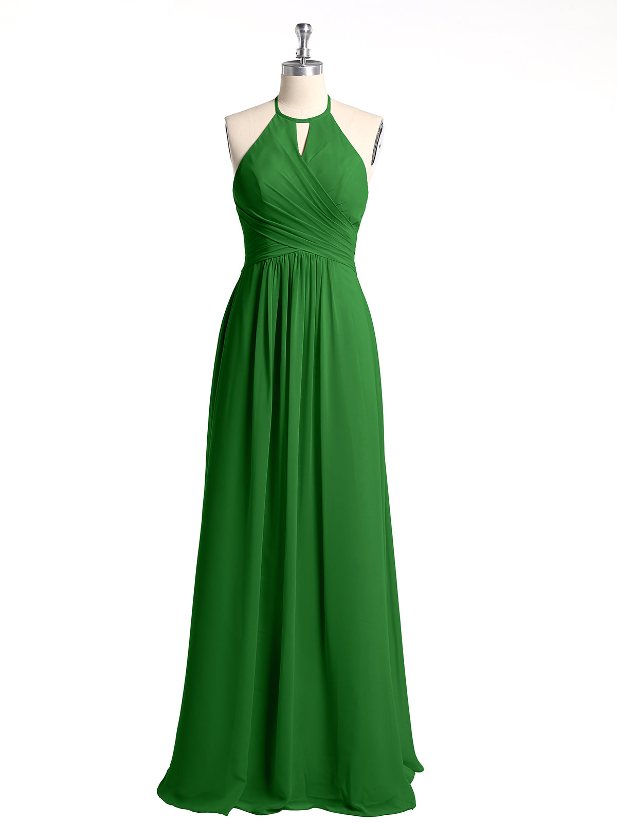 Halter Chiffon Long Dresses for Bridesmaids-Green Plus Size