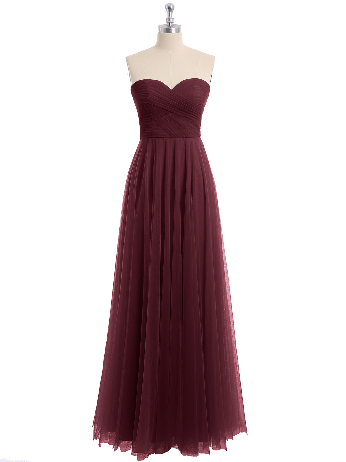 • This strapless floor-length tulle dress features the sweetheart.