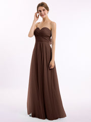 Sweetheart Strapless Neck Tulle Dresses with Bow-Chocolate