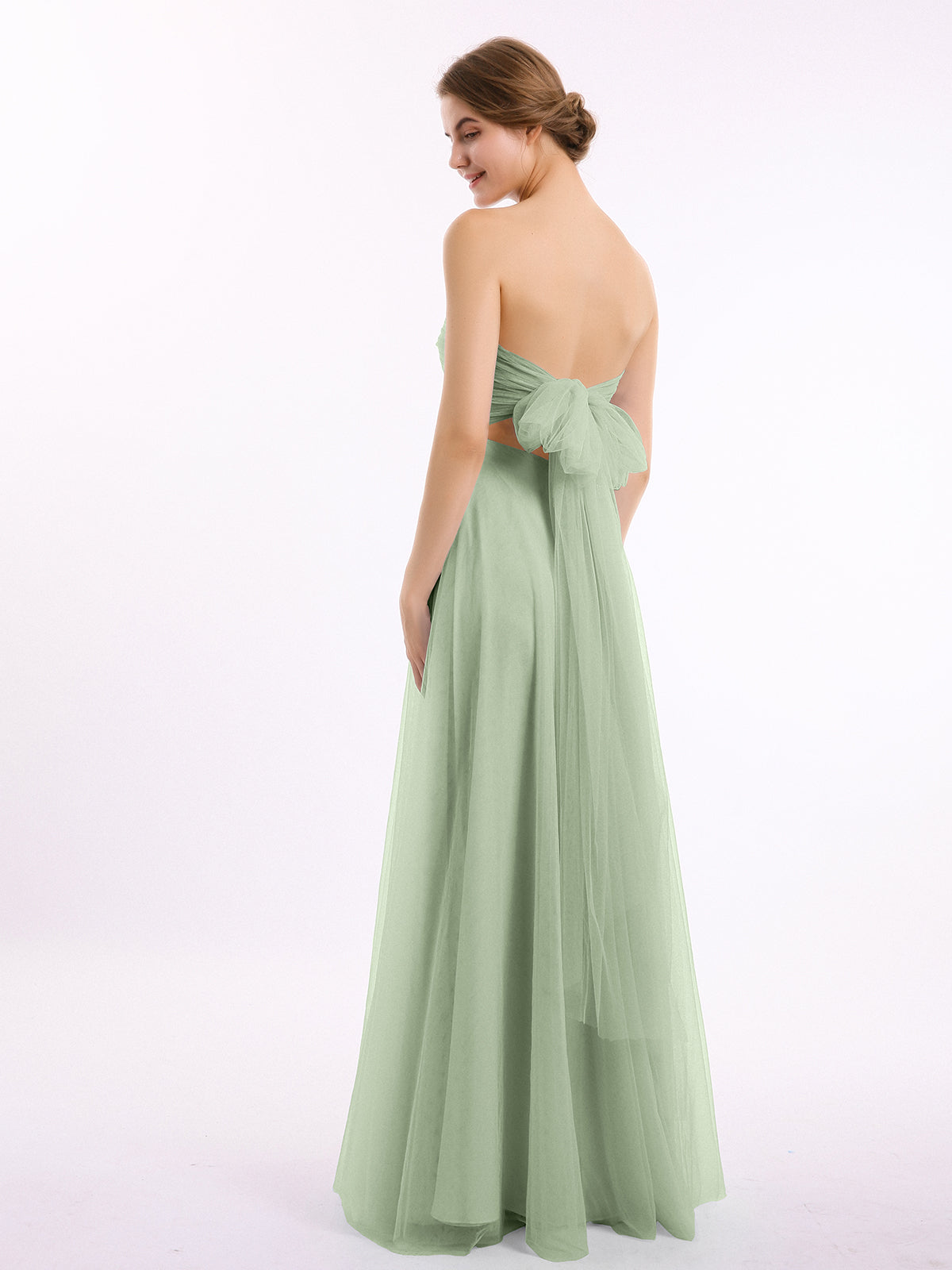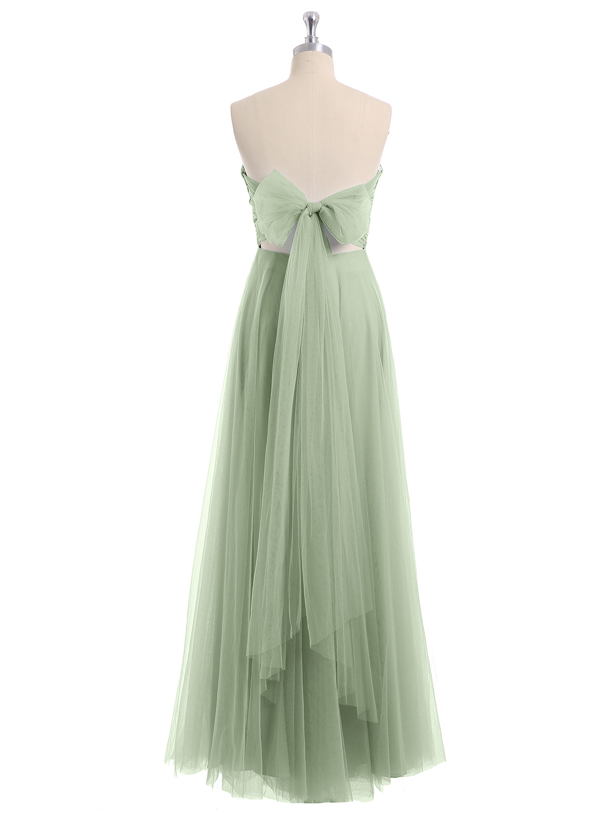 Sweetheart Strapless Neck Tulle Dresses with Bow-Dusty Sage Plus Size