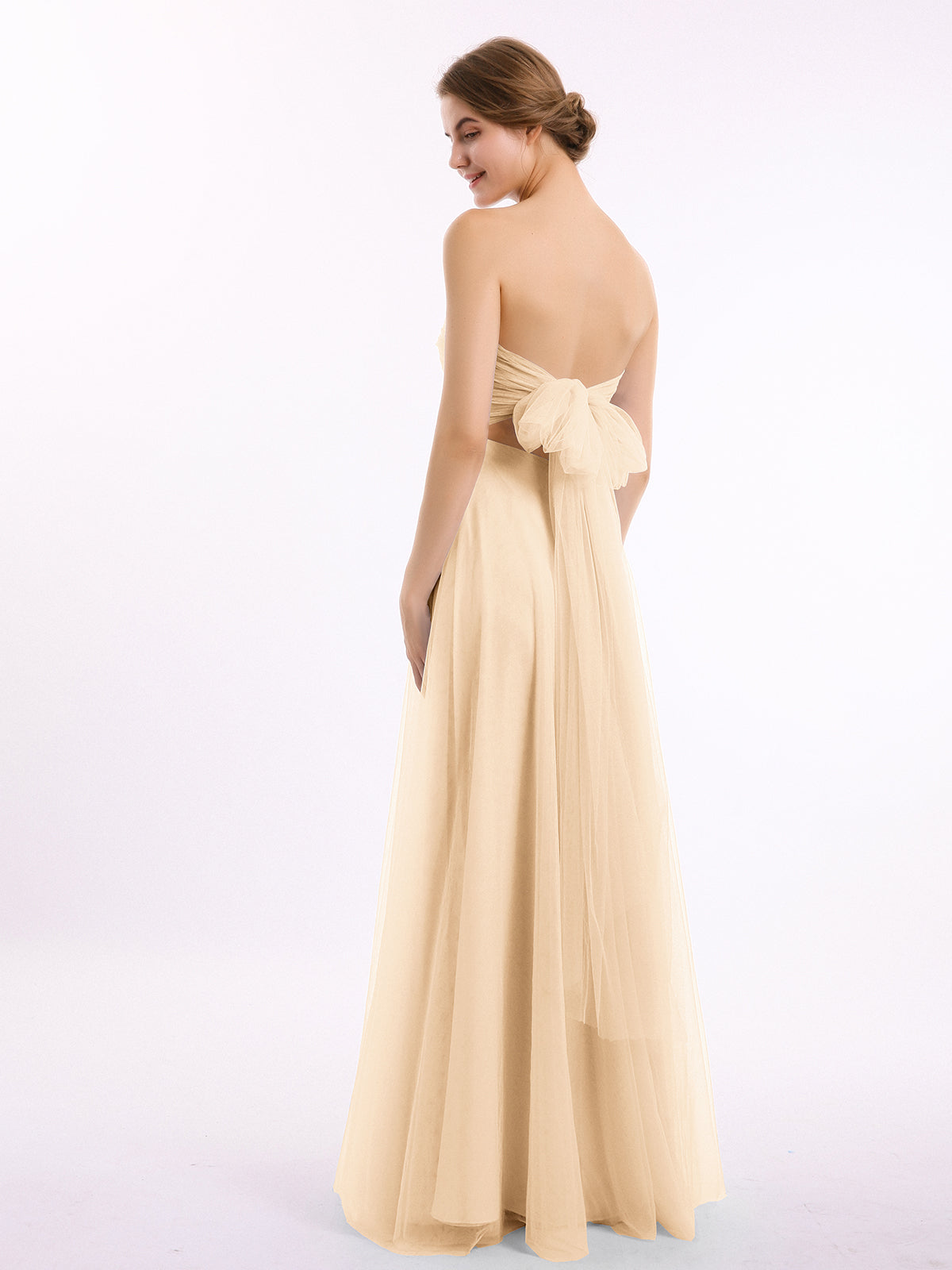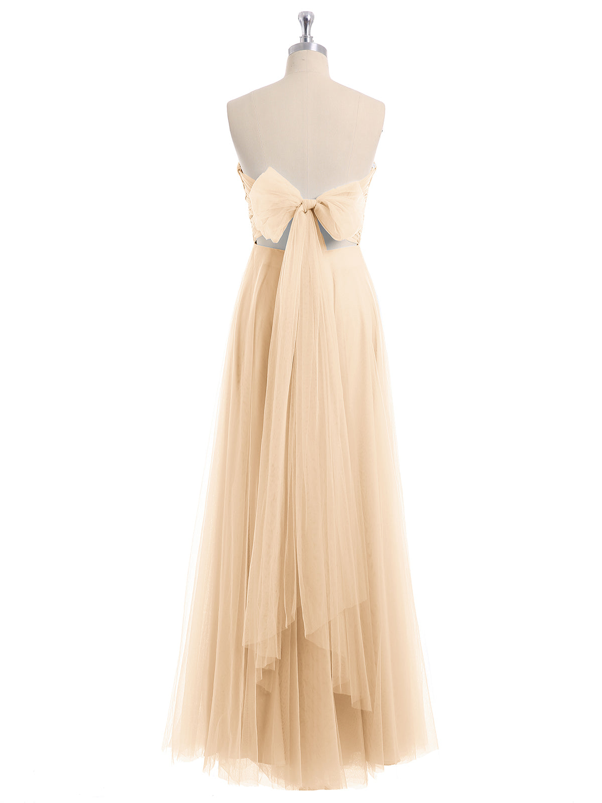 • The back design is so gorgeous. The tulle sash creates a beautiful bow to decorate your sheer back.