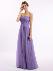 • This strapless floor-length tulle dress features the sweetheart.