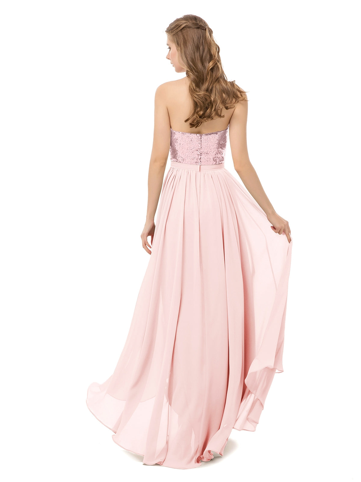 Strapless High Low Dress with Sequins Bodice-Rose Gold Plus Size