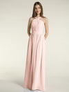 Y-neck Long Chiffon Bridesmaid Dresses-Blushing Pink Plus Size