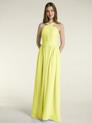 Y-neck Long Chiffon Bridesmaid Dresses-Daffodil