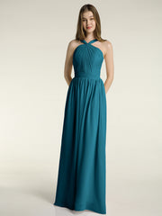Y-neck Long Chiffon Bridesmaid Dresses-Ink Blue