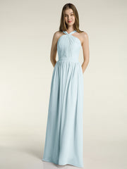 Y-neck Long Chiffon Bridesmaid Dresses-Mist