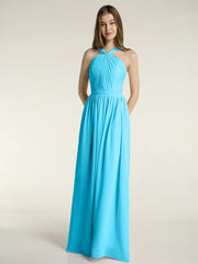 Y-neck Long Chiffon Bridesmaid Dresses-Pool