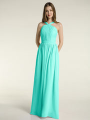 Y-neck Long Chiffon Bridesmaid Dresses-Spa