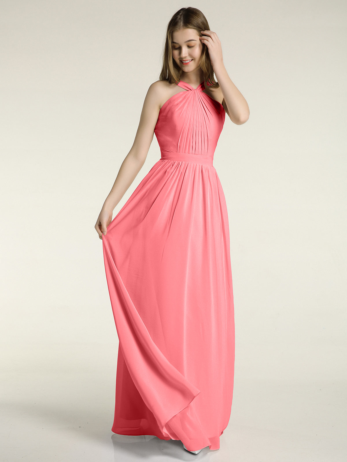 Y-neck Long Chiffon Bridesmaid Dresses-Watermelon Plus Size