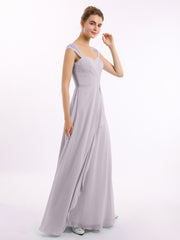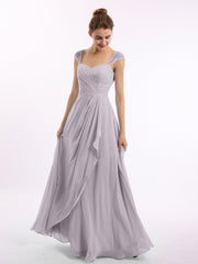 Chiffon Bridesmaid Dresses with Lace Cap Sleeves-Dusk