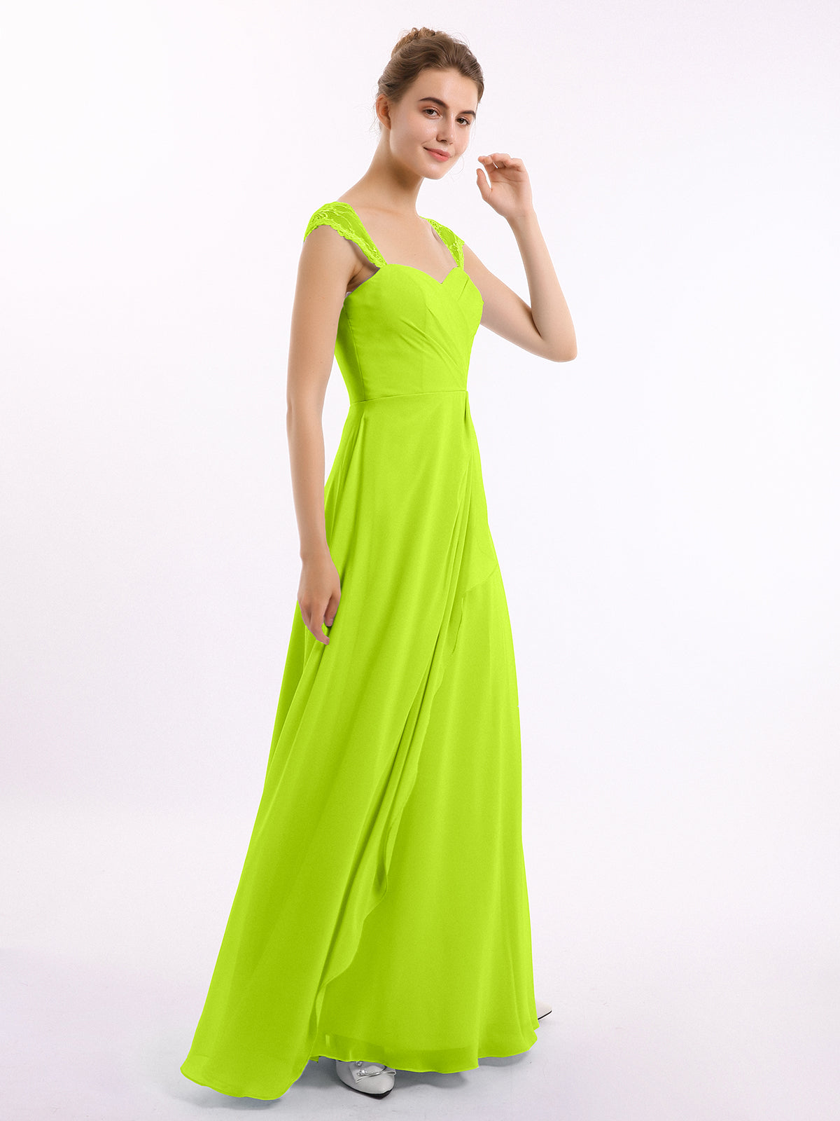 Chiffon Bridesmaid Dresses with Lace Cap Sleeves-Lime Green Plus Size