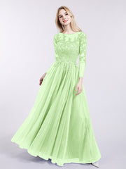 Tulle with Appliqued Long Sleeves Dress-Sage