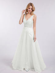 Long Tulle See Through Bodice Dress-Ivory Plus Size