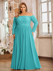 Lace and Chiffon Long Sleeves Dresses with Pockets-Jade Plus Size