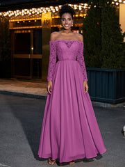 Lace and Chiffon Long Sleeves Dresses with Pockets-Orchid