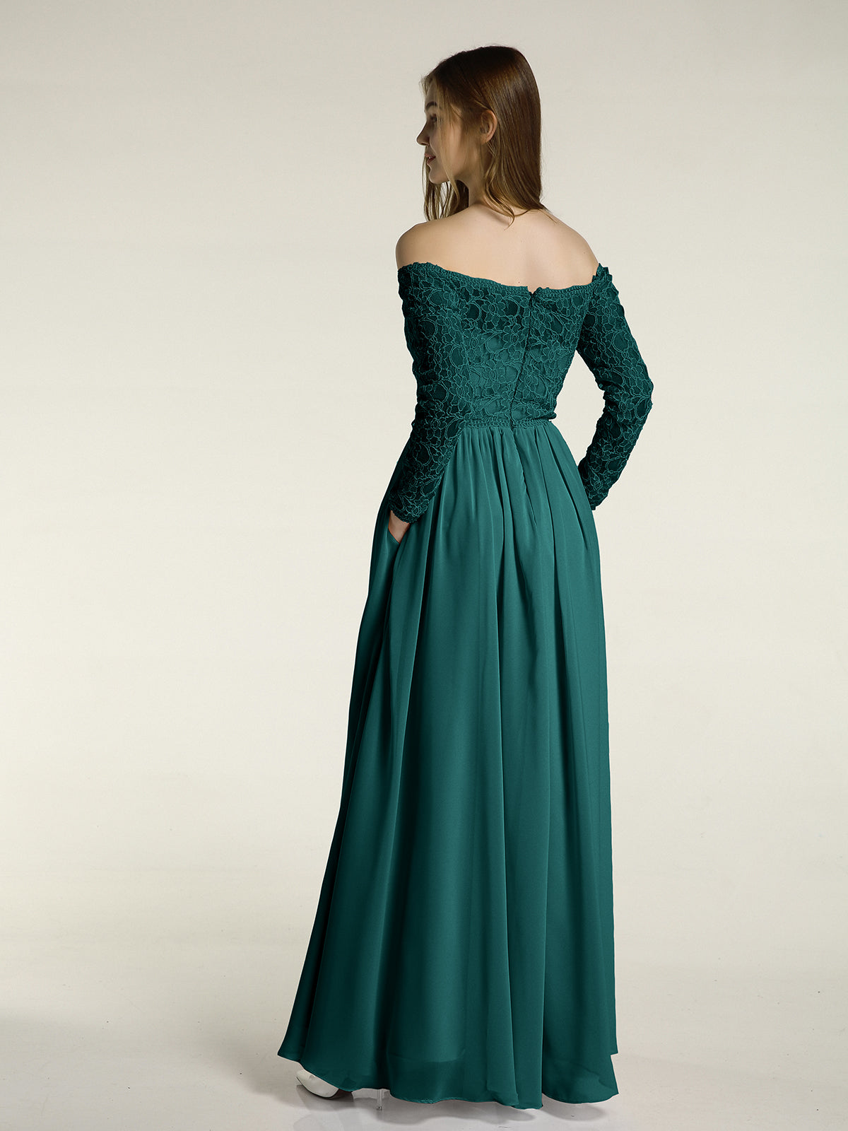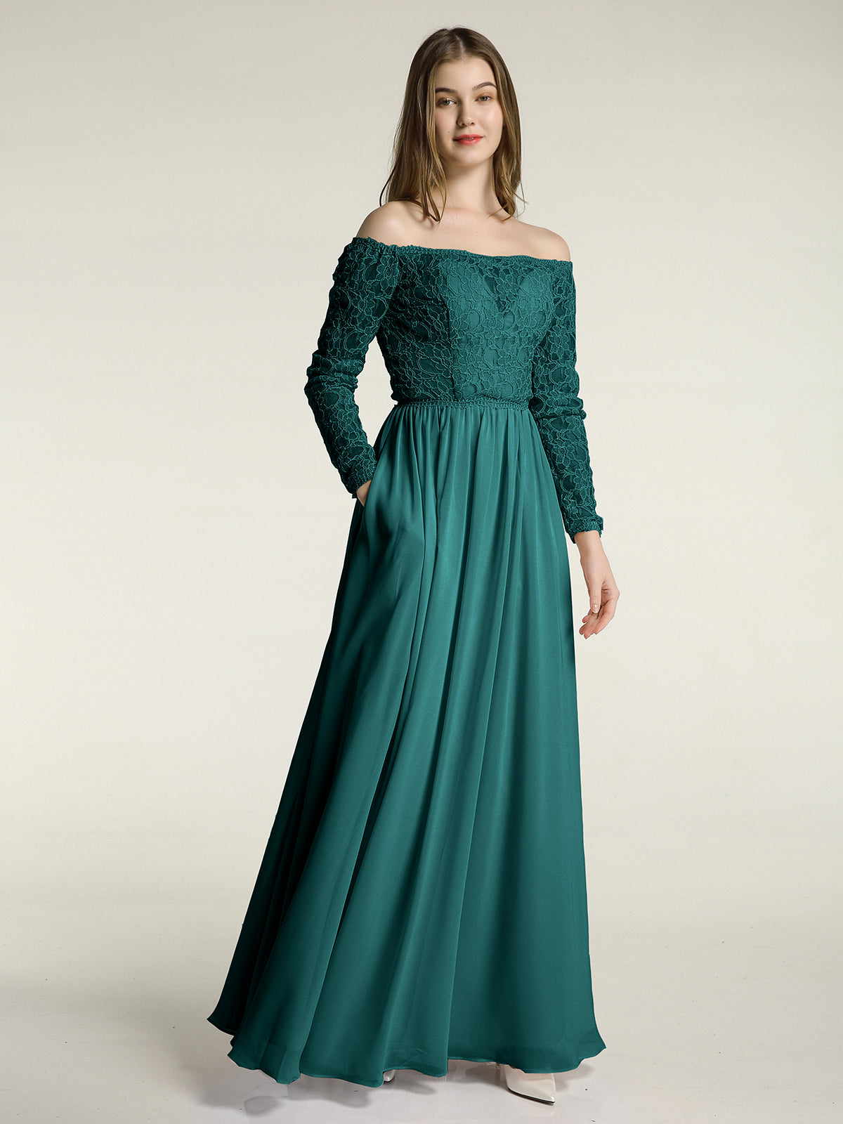 Lace and Chiffon Long Sleeves Dresses with Pockets-Peacock Plus Size