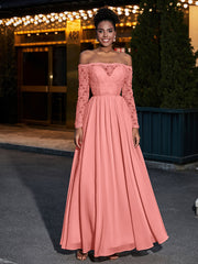 Lace and Chiffon Long Sleeves Dresses with Pockets-Sunset