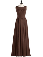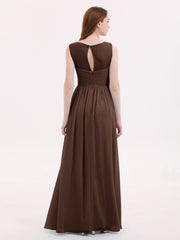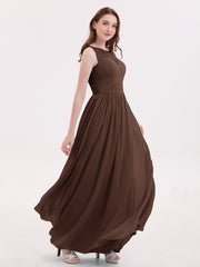 Long Chiffon Gowns with Illusion Neckline-Chocolate