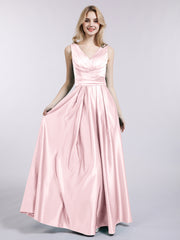 Open Back Long Satin Gown with V-neck-Blushing Pink