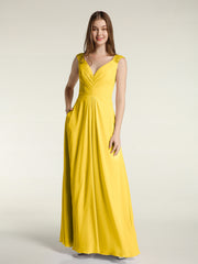 Lace Straps V-neck Chiffon Dresses with Pockets-Marigold Plus Size