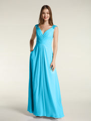 Lace Straps V-neck Chiffon Dresses with Pockets-Pool Plus Size