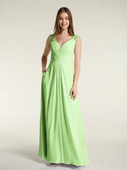 Lace Straps V-neck Chiffon Dresses with Pockets-Sage