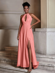 Chiffon Long Halter Dresses with Slit-Sunset