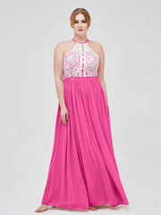 Halter Maxi Dress with Ivory Lace Bodice-Azalea Plus Size
