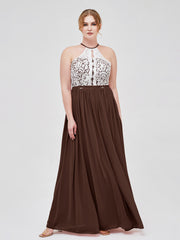 Halter Maxi Dress with Ivory Lace Bodice-Chocolate Plus Size
