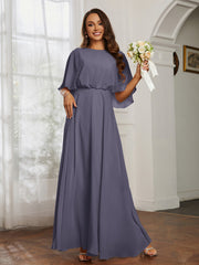 Flutter Sleeves Long Chiffon Bridesmaid Dresses-Stormy