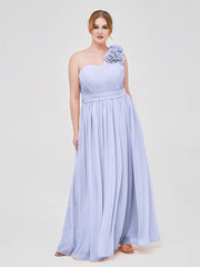 One Shoulder Chiffon Dress with Flowers Strap-Lavender Plus Size