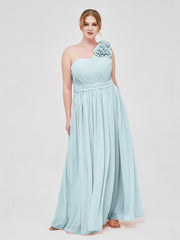 One Shoulder Chiffon Dress with Flowers Strap-Mist Plus Size