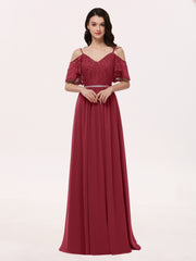 Spaghetti Strap Lace and Chiffon Dress Burgundy