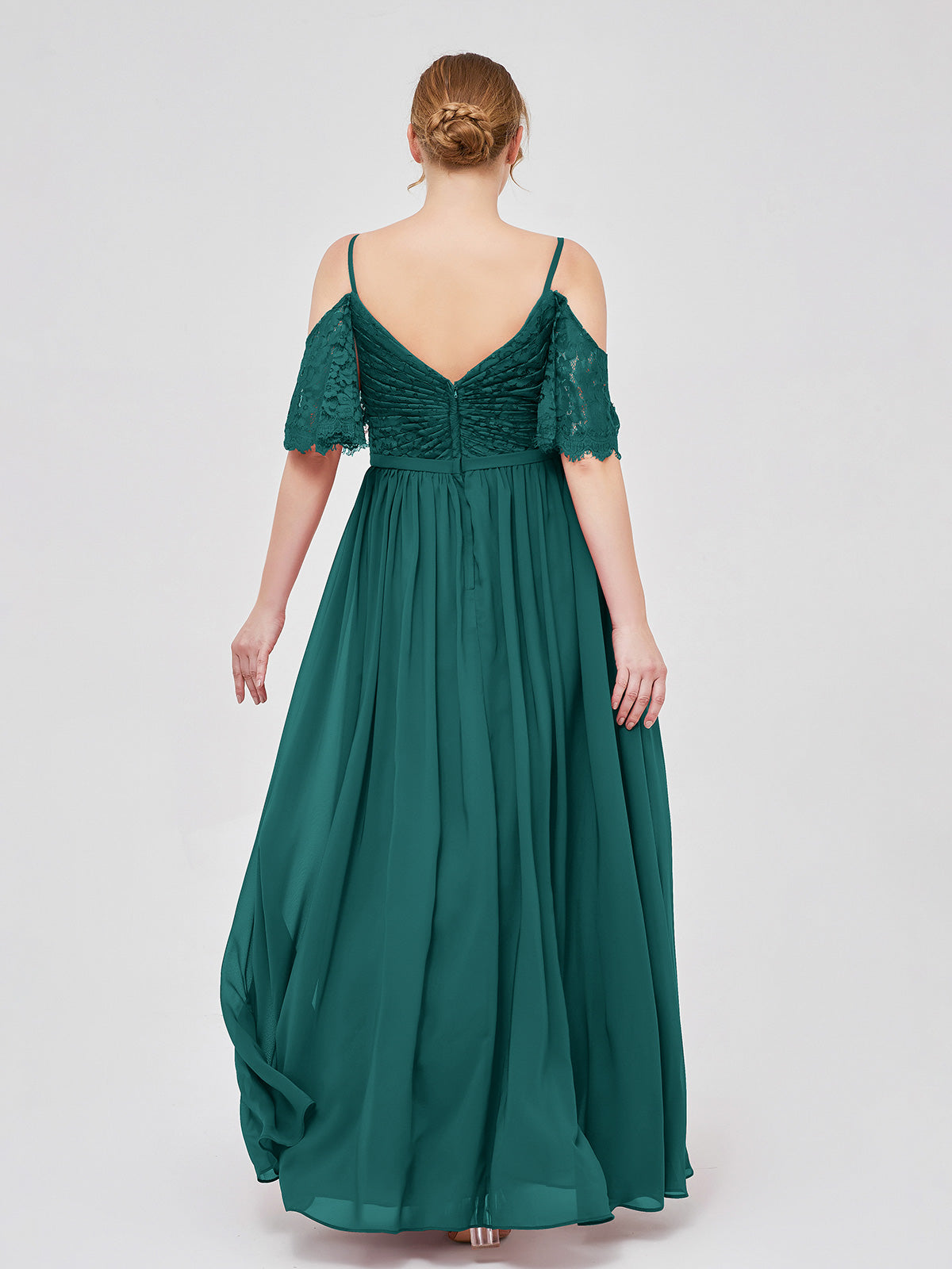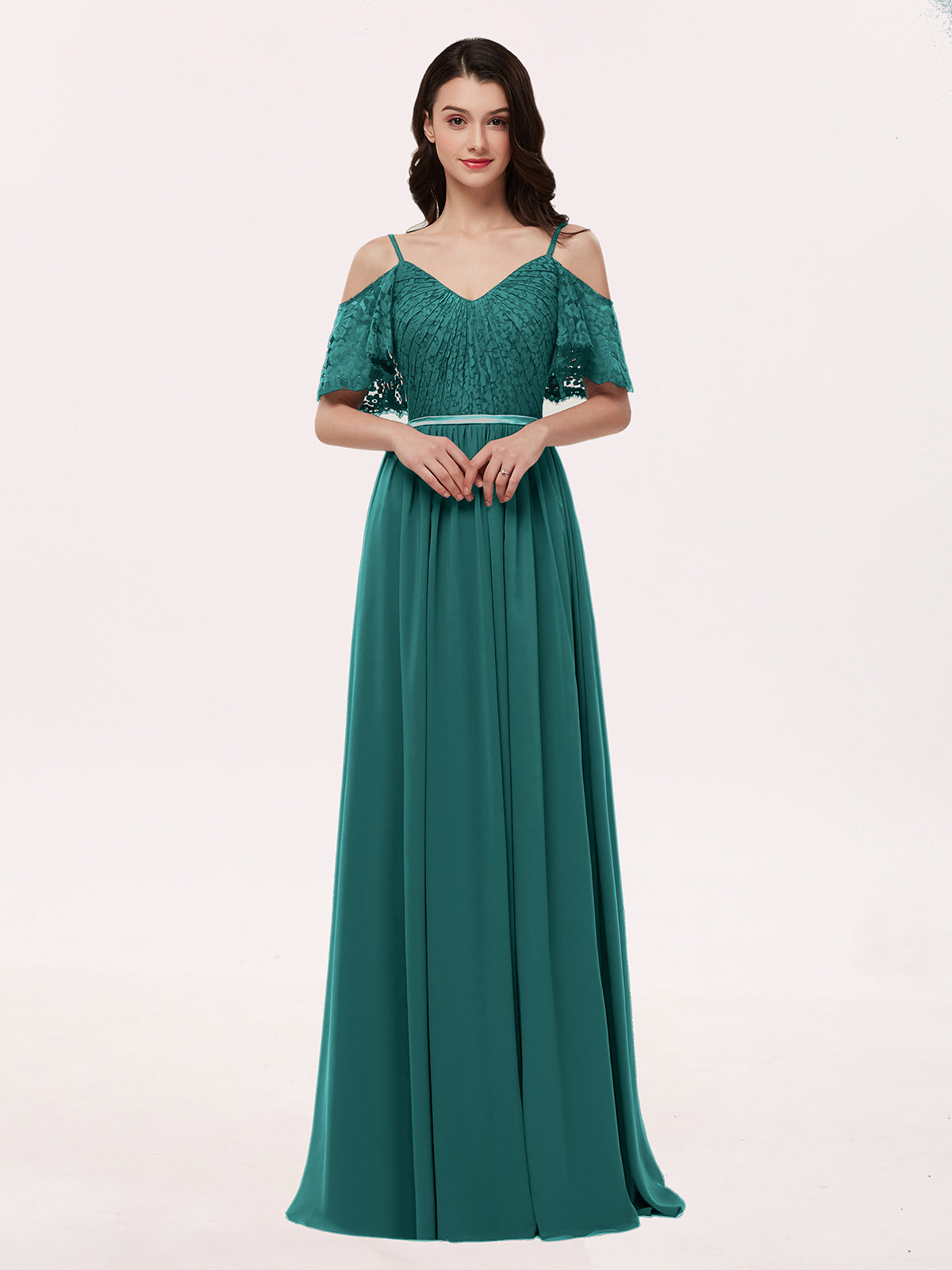 Spaghetti Strap Lace and Chiffon Dress Peacock