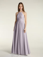Halter Chiffon Long Bridesmaid Dresses-Dusk
