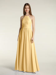 Halter Chiffon Long Bridesmaid Dresses-Gold