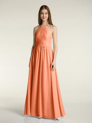 Halter Chiffon Long Bridesmaid Dresses-Papaya