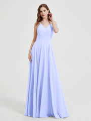 V-neck Cross Back Chiffon Bridesmaid Dresses-Lavender