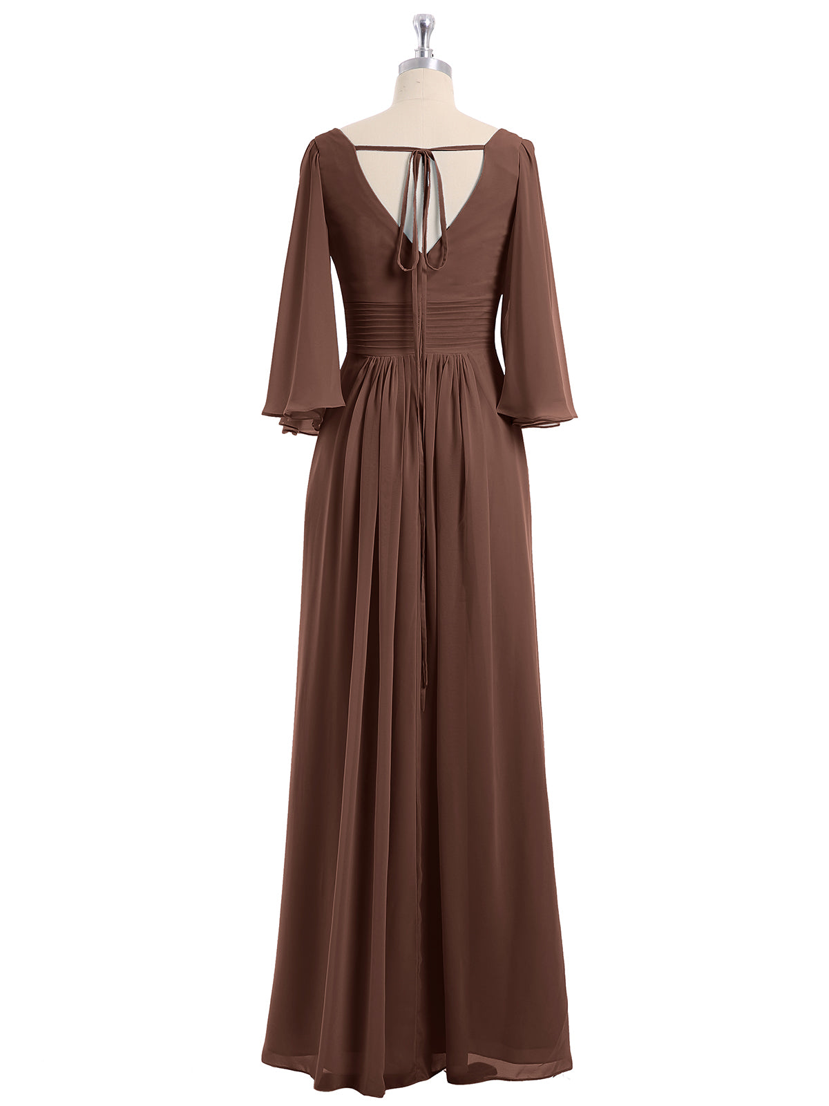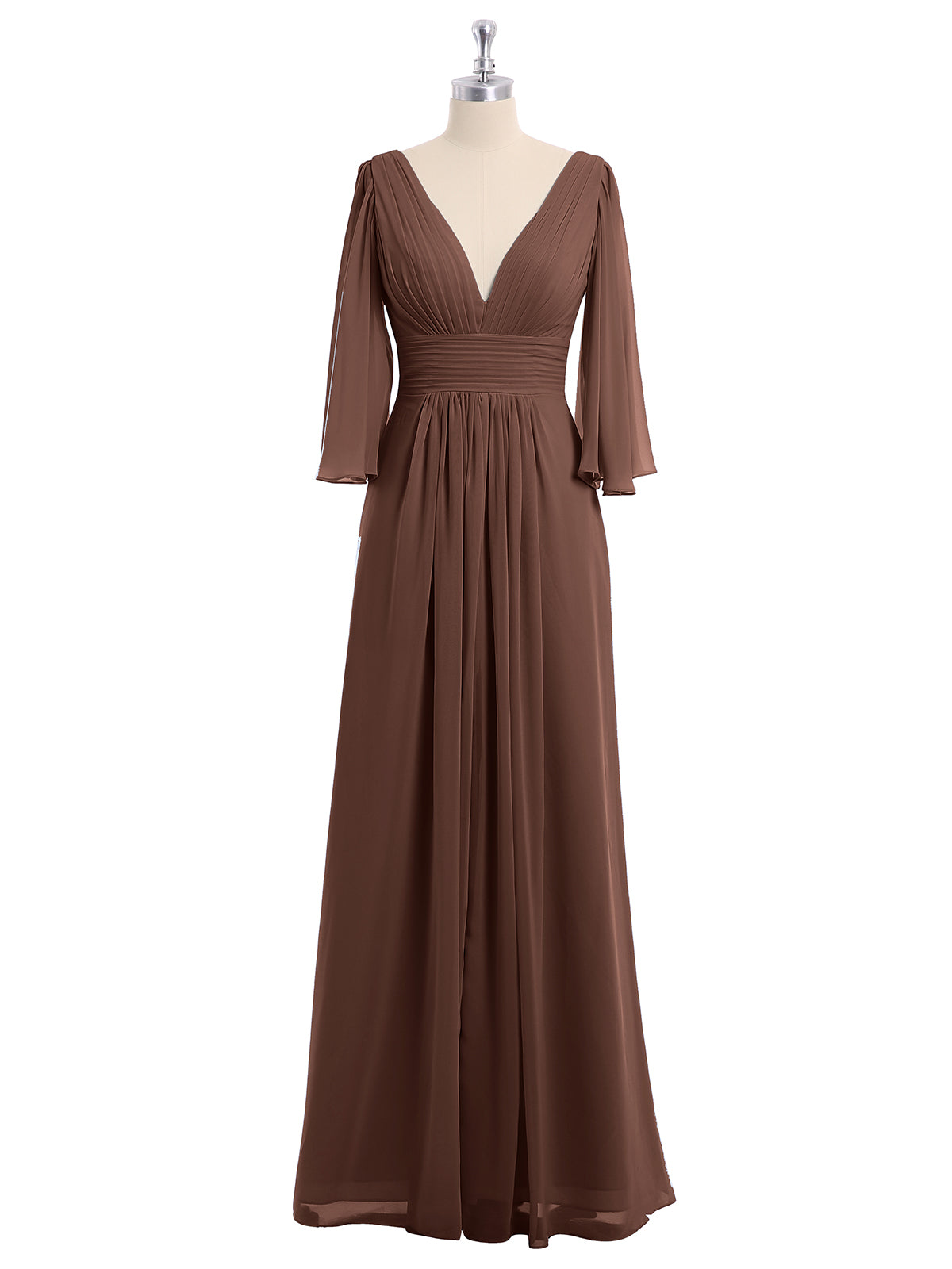 Deep V-neck Chiffon Dresses with Slit Chocolate Plus Size