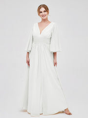 Deep V-neck Chiffon Dresses with Slit Ivory Plus Size