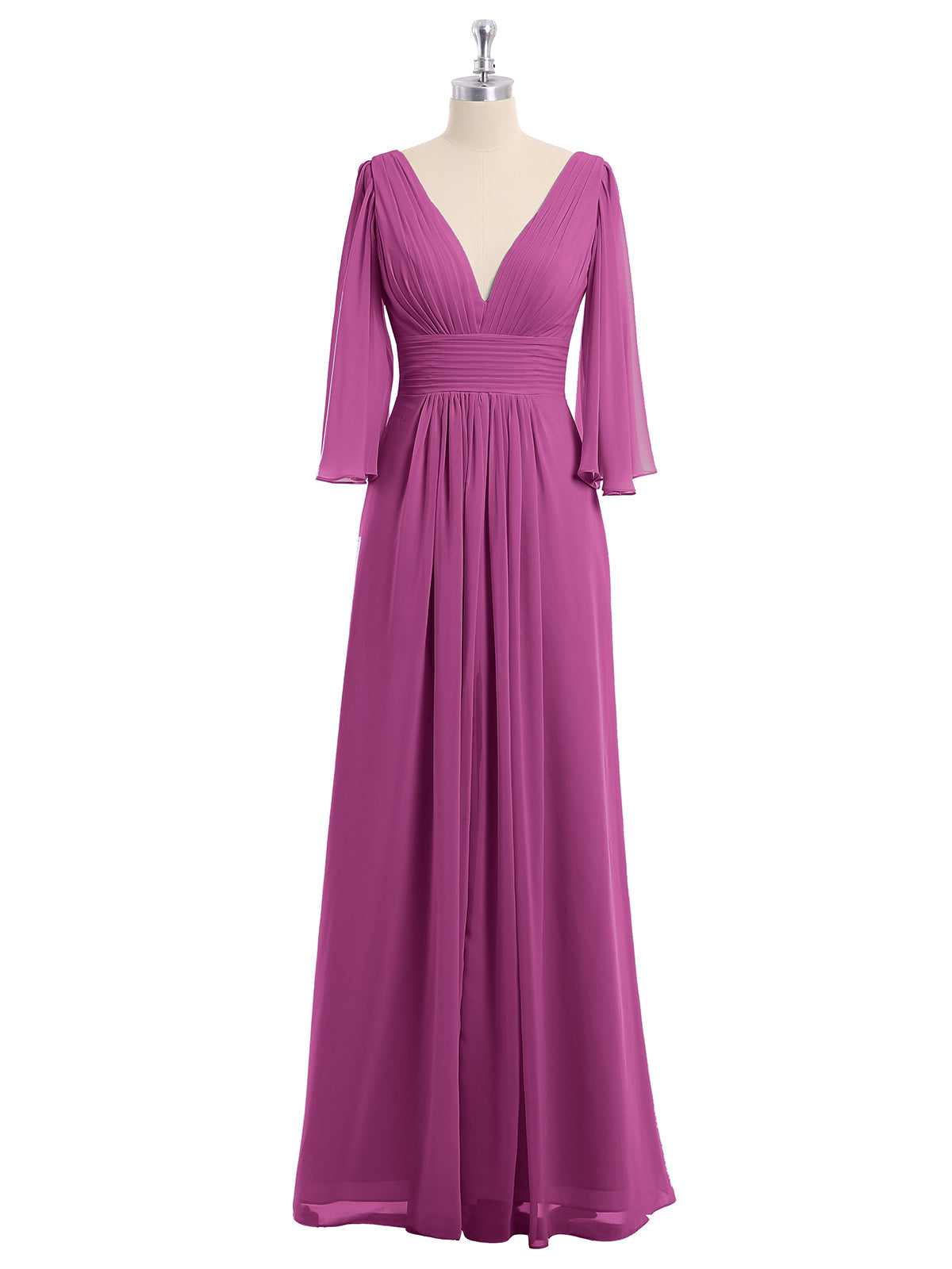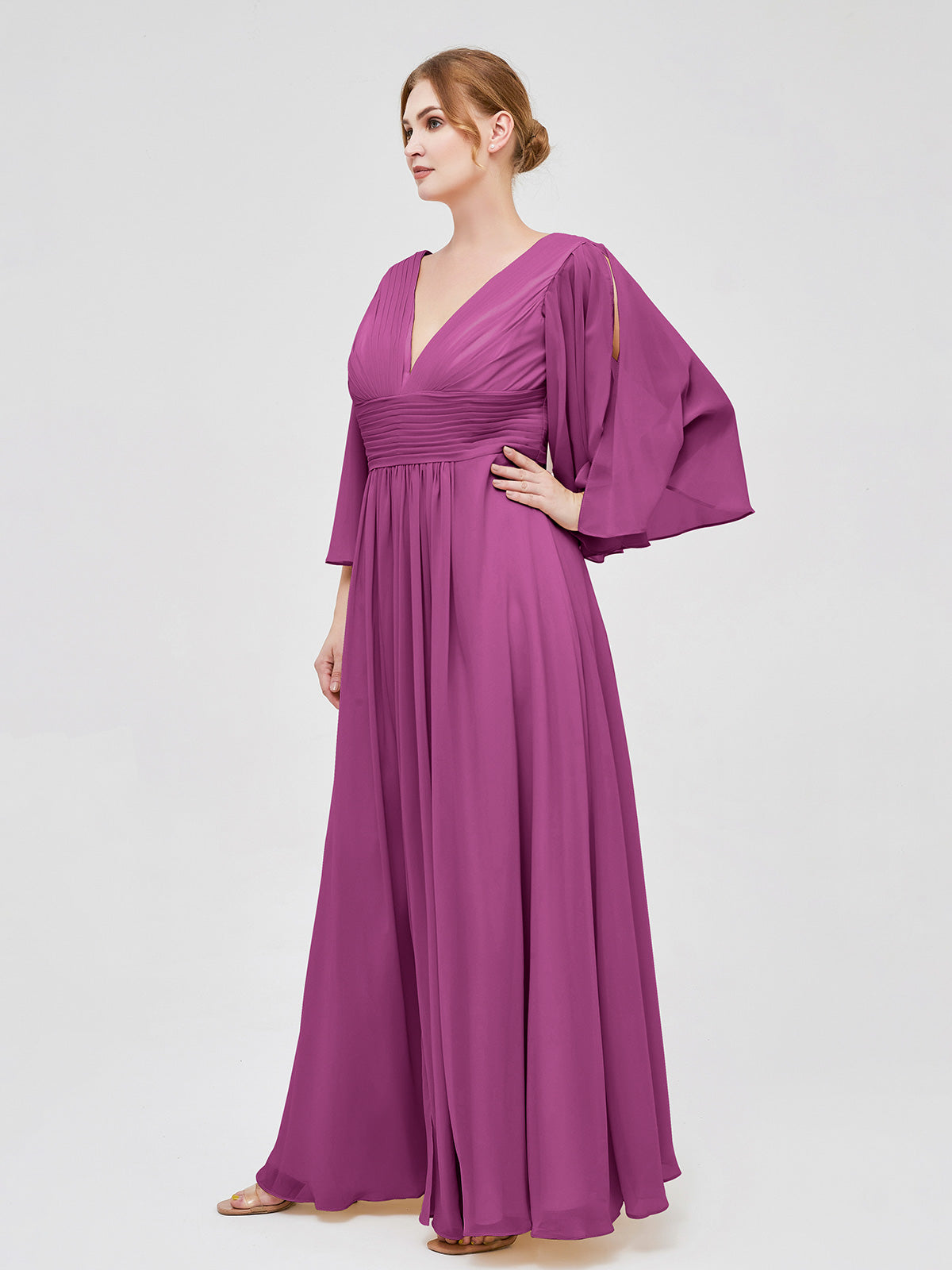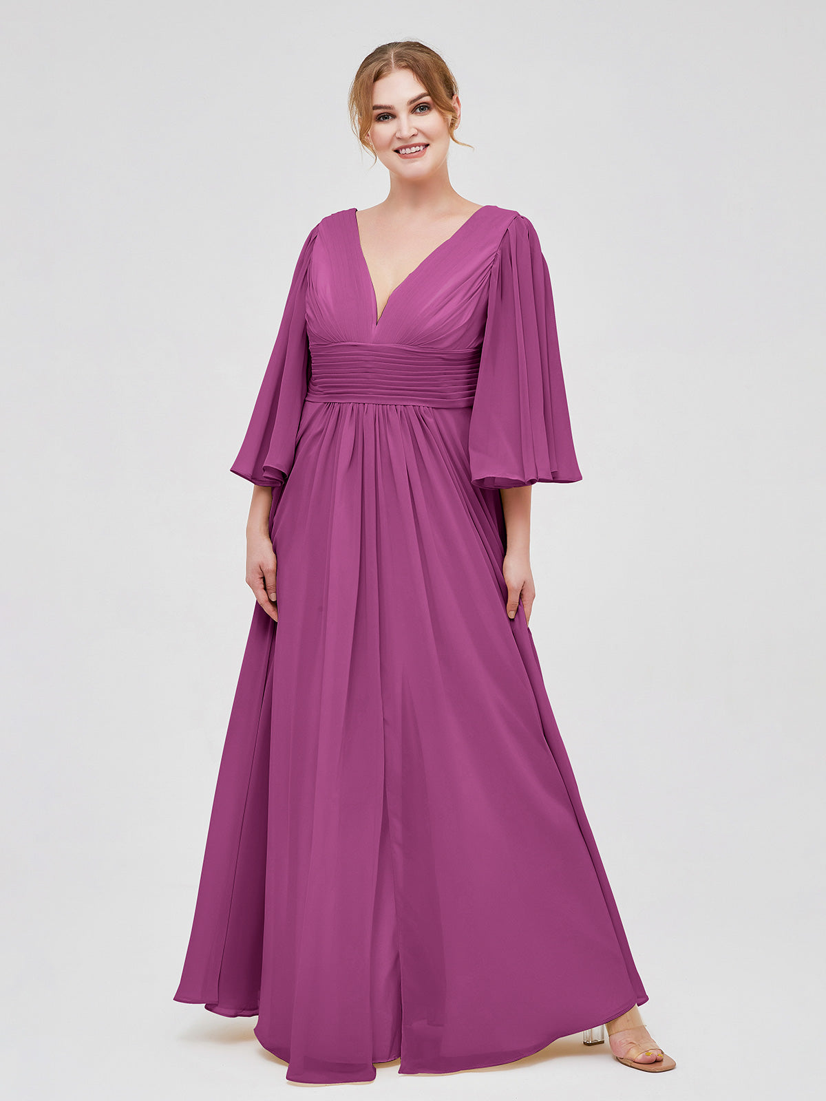 Deep V-neck Chiffon Dresses with Slit Orchid Plus Size