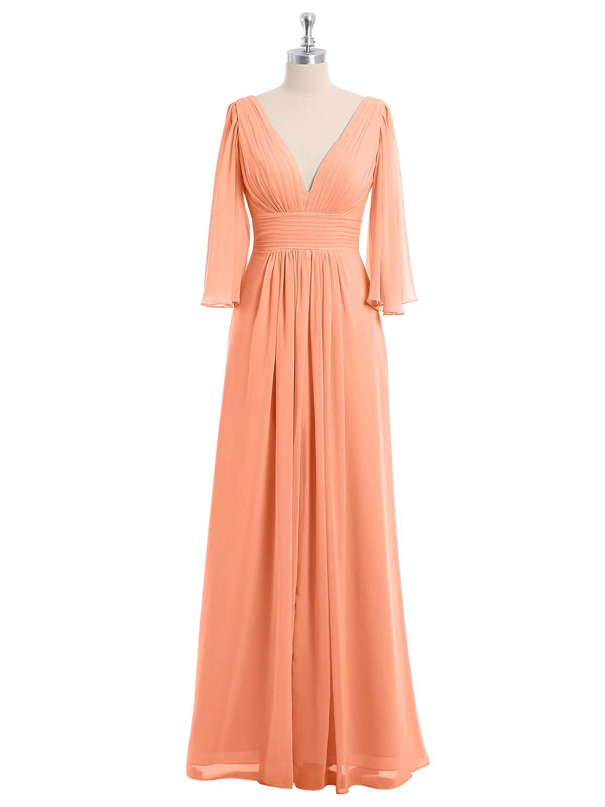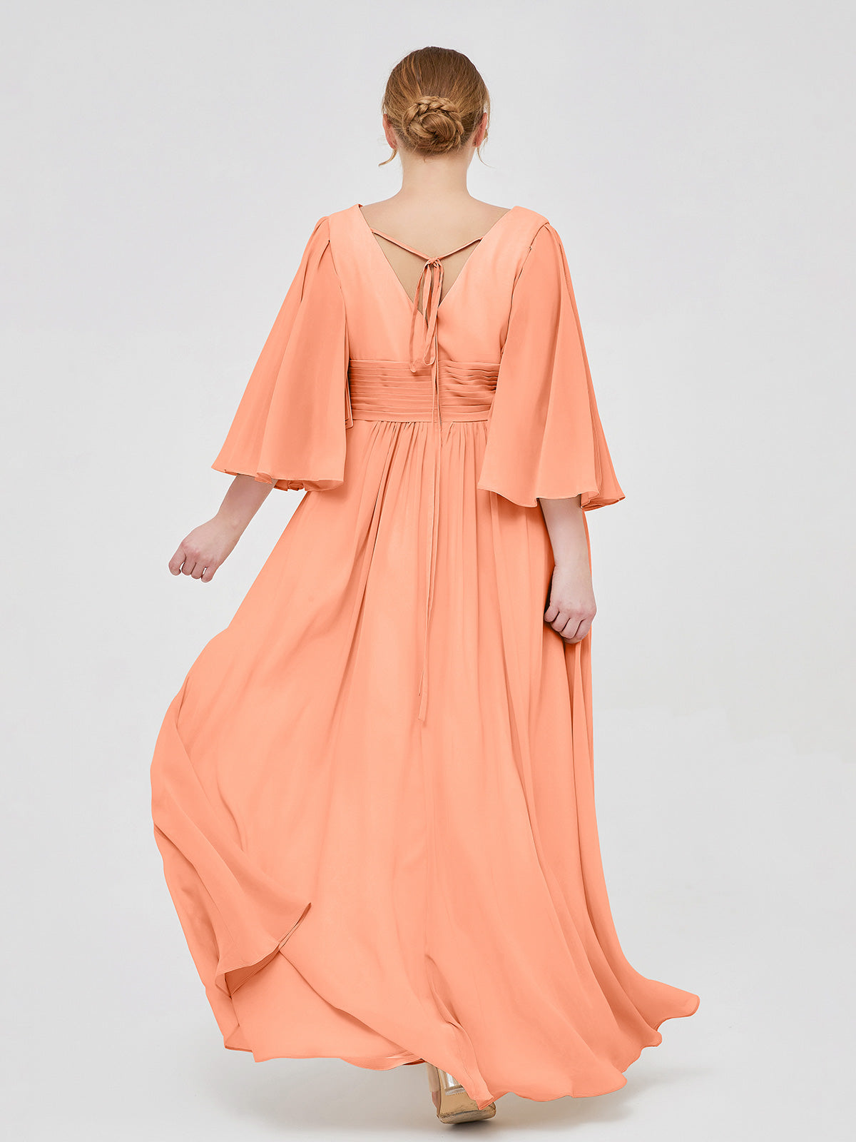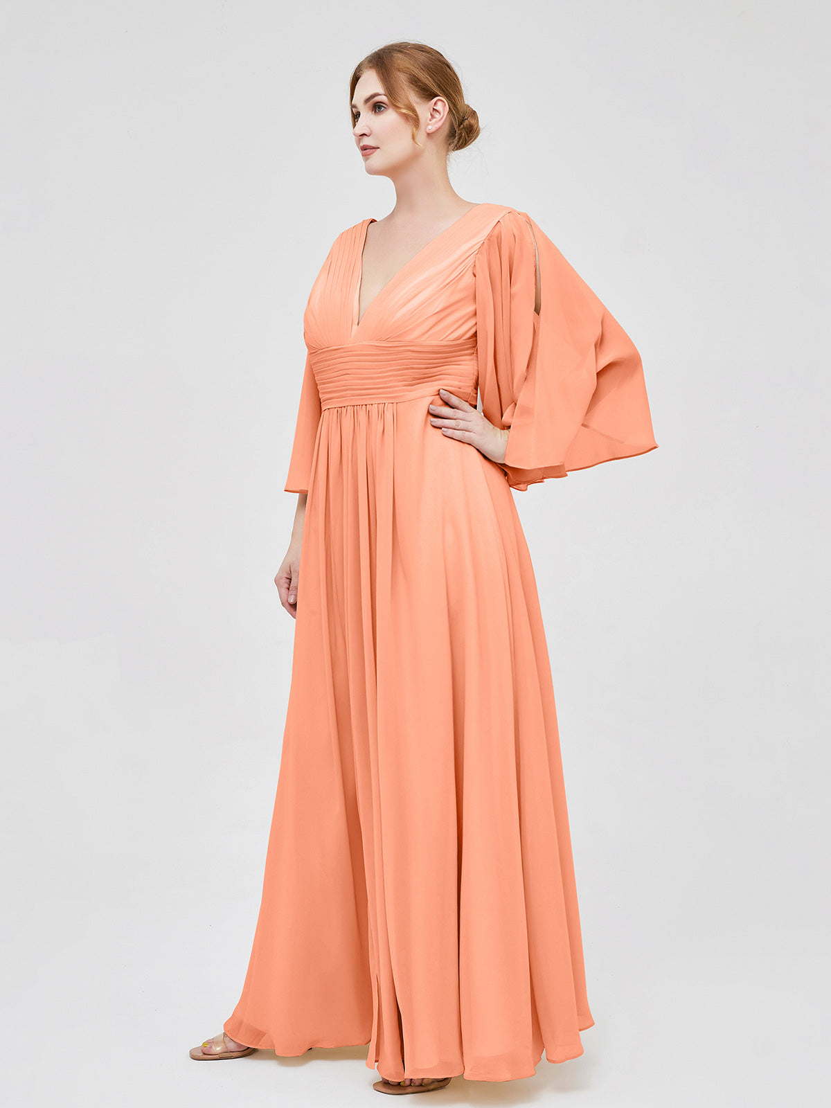 Deep V-neck Chiffon Dresses with Slit Papaya Plus Size