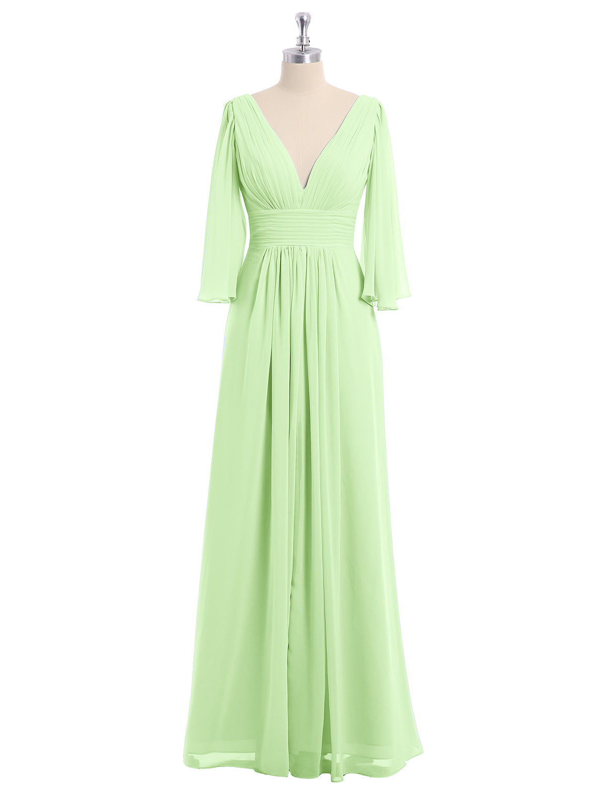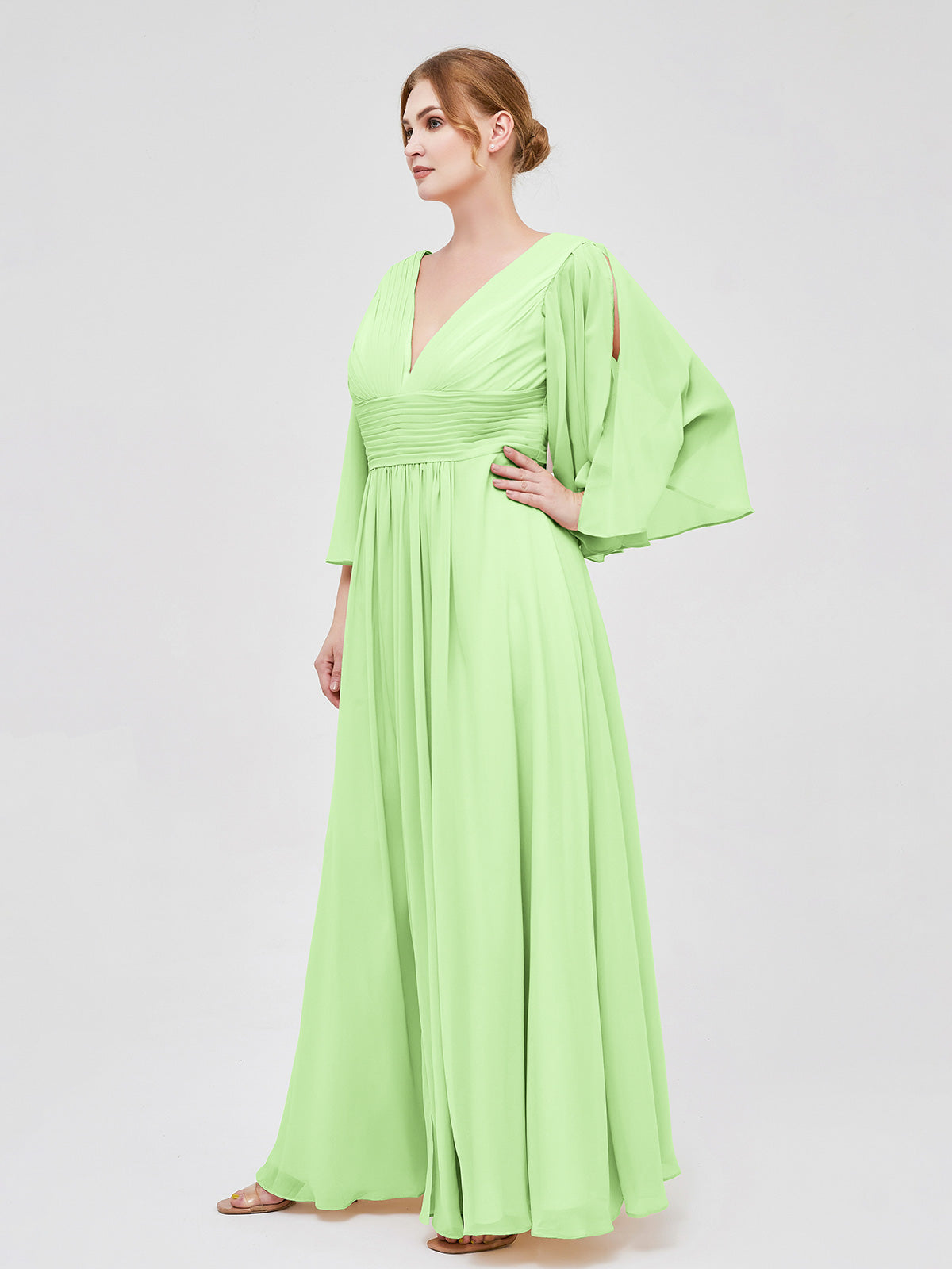 Deep V-neck Chiffon Dresses with Slit Sage Plus Size