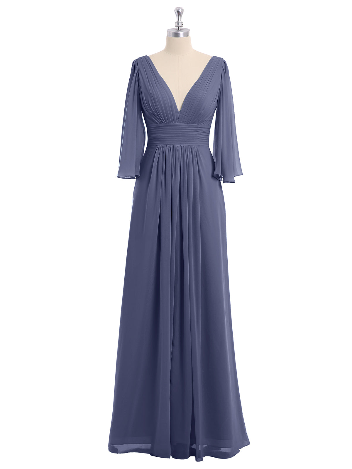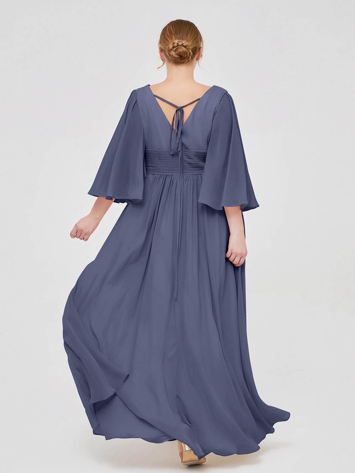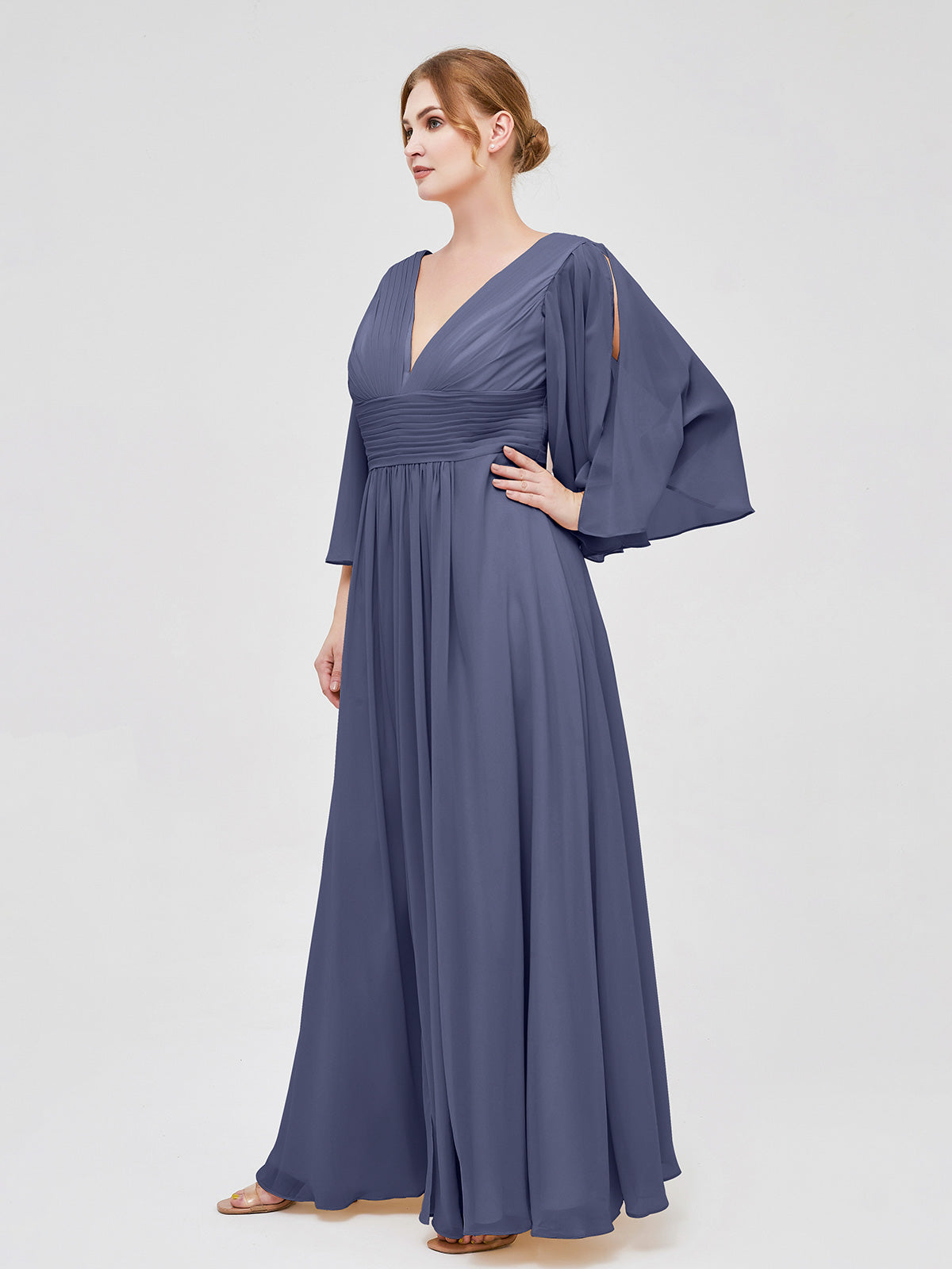 Deep V-neck Chiffon Dresses with Slit Stormy Plus Size
