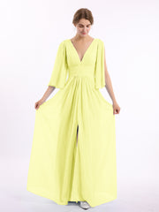Deep V-neck Chiffon Dresses with Slit Daffodil