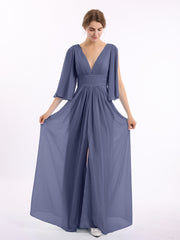 Deep V-neck Chiffon Dresses with Slit Stormy